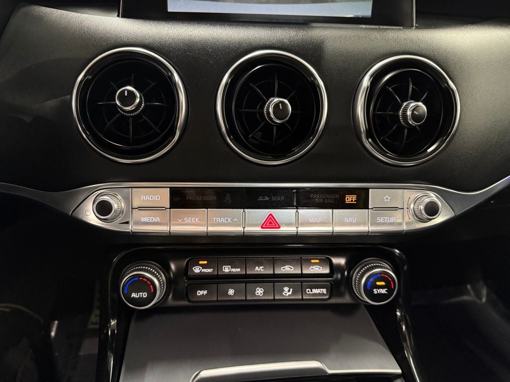 Inside, the Stinger GT1 pampers you with luxurious leather upholstery, heated front seats, and a panoramic sunroof that floods the cabin with natural light. The state-of-the-art infotainment system, complete with navigation and a premium harman/kardon® audio system, keeps you connected and entertained on every journey.