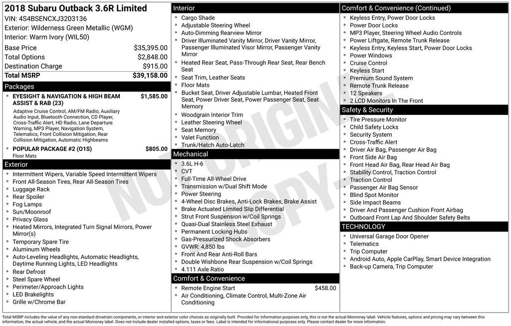 - Vehicle Name: Subaru Outback