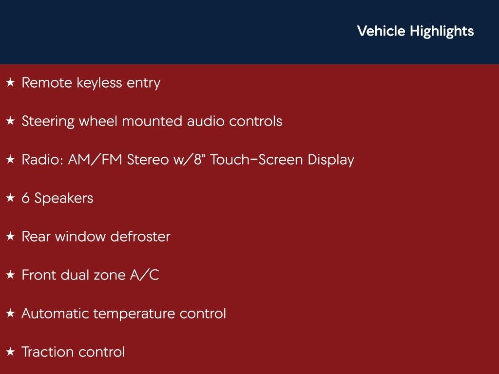 - Radio: AM/FM Stereo w/8" Touch-Screen Display