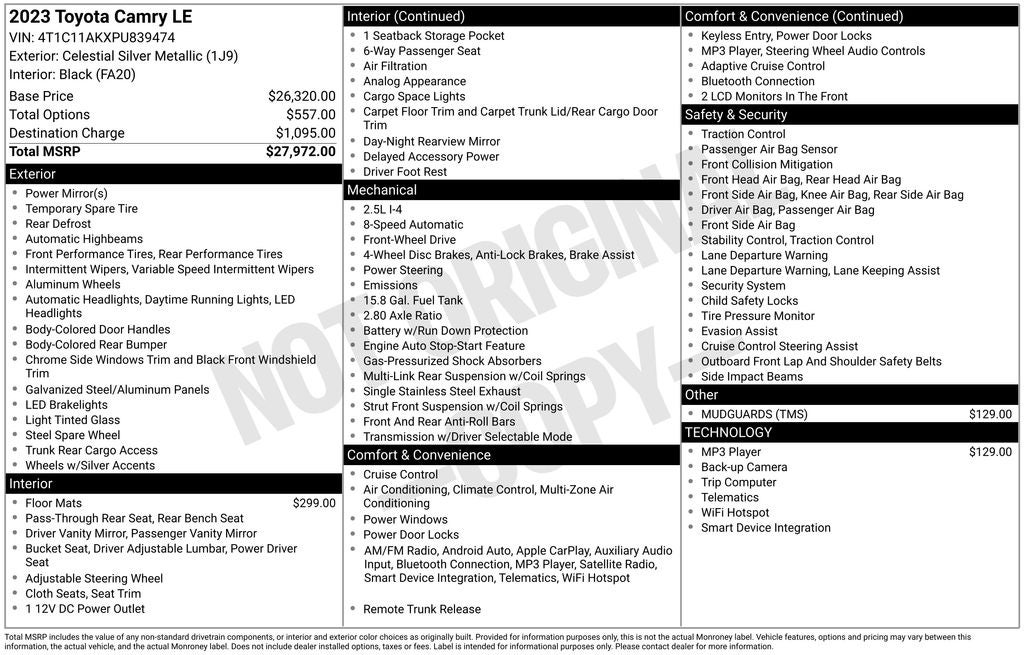 Price excludes Dealer Processing Charge (not required by law):$799