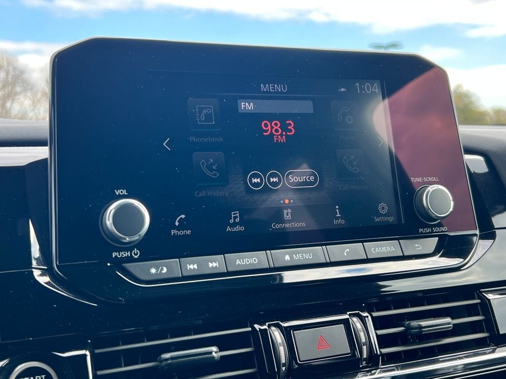 - Radio: AM/FM Audio System w/NissanConnect -inc: 6 speakers, Radio Data System (RDS), Apple CarPlay and Android Auto, 8" color display w/multi-touch control, SiriusXM Satellite Radio w/advanced audio features, 2 illuminated front USB connection ports (1 type A, 1 type C) for iPod interface and other compatible devices, Bluetooth® hands-free phone system and streaming audio, Speed-Sensitive Volume control (SSV), hands-free text messaging assistant and Siri Eyes-Free/Google Assistant voice recognition