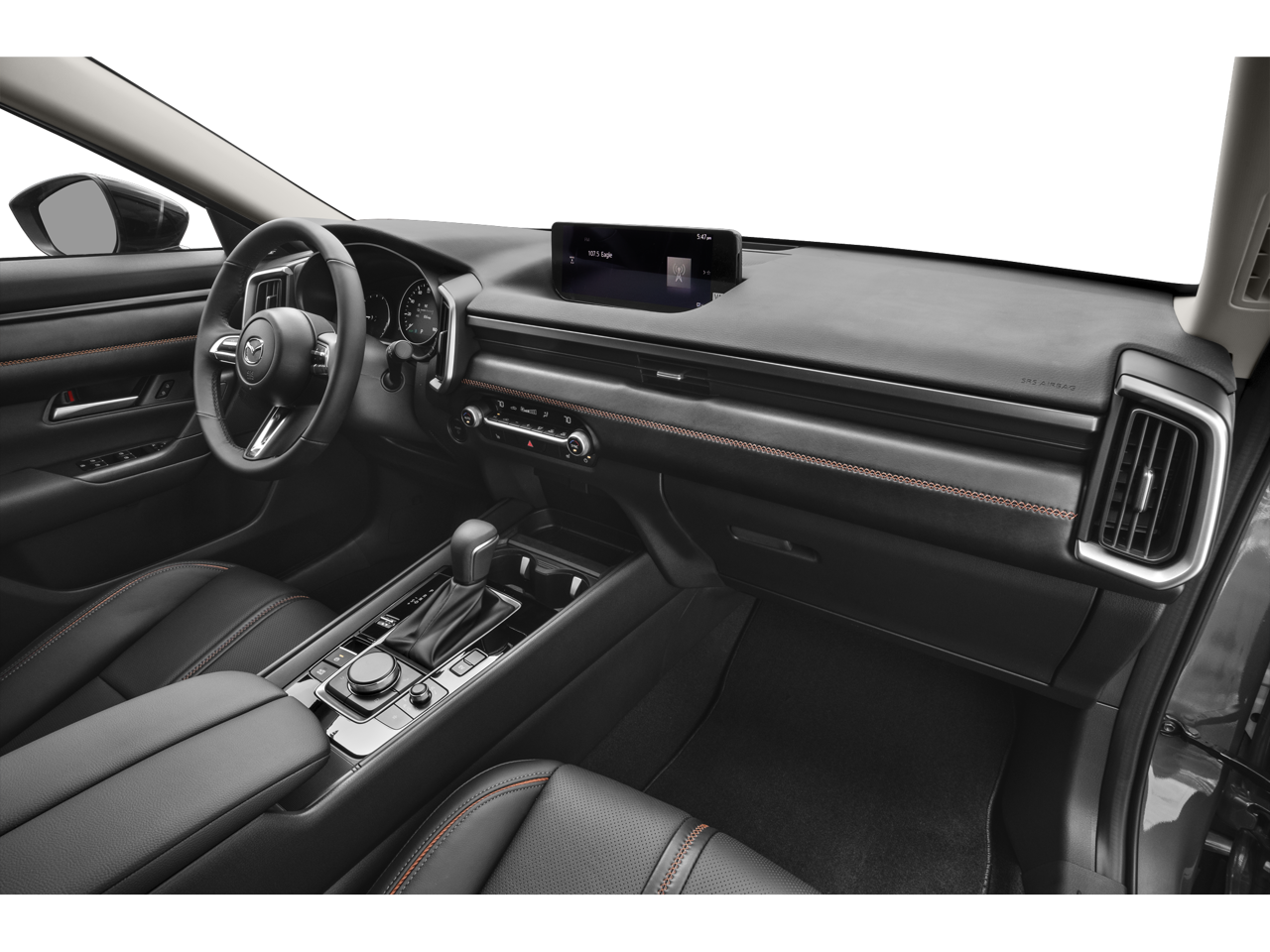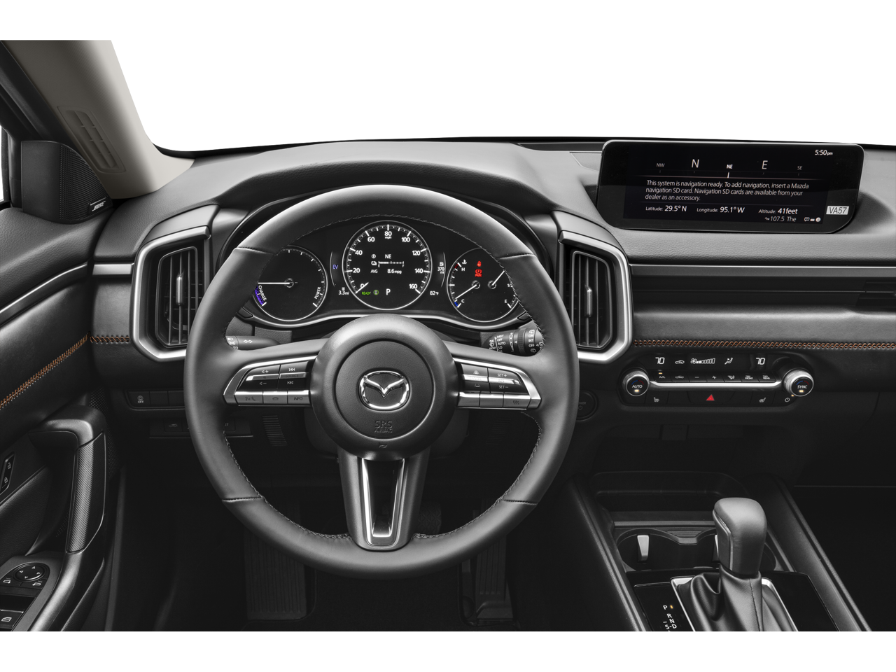Step inside and you'll be greeted by a wealth of premium features that elevate the driving experience. The leather-wrapped steering wheel and shift knob, along with the heated front seats, offer unparalleled comfort and refinement. The Bose 12-speaker audio system and Mazda Connect infotainment system with navigation keep you connected and entertained on the road.