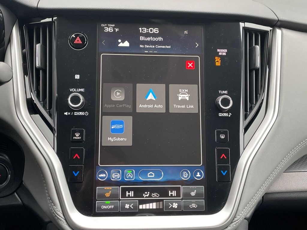 - Radio: Subaru 11.6" Multimedia Plus System -inc: AM/FM stereo, HD Radio, valet mode, multi-touch gesture high resolution display screen, voice activated controls, Bluetooth® audio streaming and hands-free phone connectivity w/SMS text messaging (refer to subaru.com for cell phone compatibility), Near Field Communication (NFC), iPod control capability, SiriusXM w/360L (4 months free trial/subscription required after), SiriusXM Travel Link (3 years free trial/subscription required after), smartphone integration w/full screen view and wireless connection for Android Auto and Apple CarPlay, USB and Over The Air (OTA) audio system update, audio/Bluetooth® steering wheel control switches, 6 speakers, 3.5mm illuminated front auxiliary input jack, illuminated front and rear USB-A and USB-C input/charge ports and roof mounted satellite and connected services