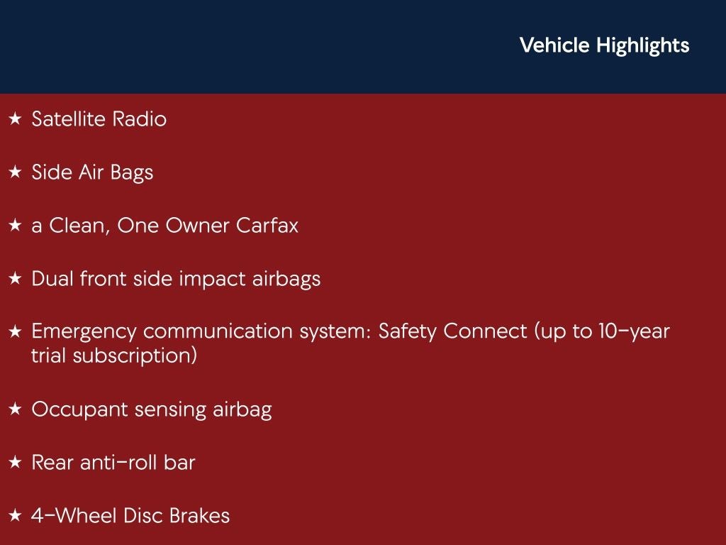 - Emergency SOS Capable Safety Connect (up to 10-year trial subscription) vehicle integrated emergency SOS system